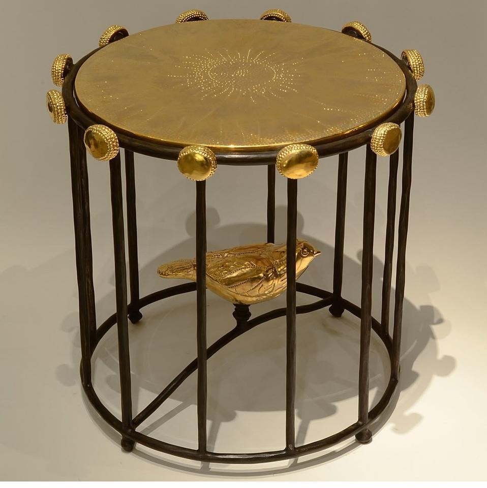 Table d'appoint en métal de forme ronde avec motif d'oiseau, table basse de qualité antique, taille personnalisée, en aluminium et laiton