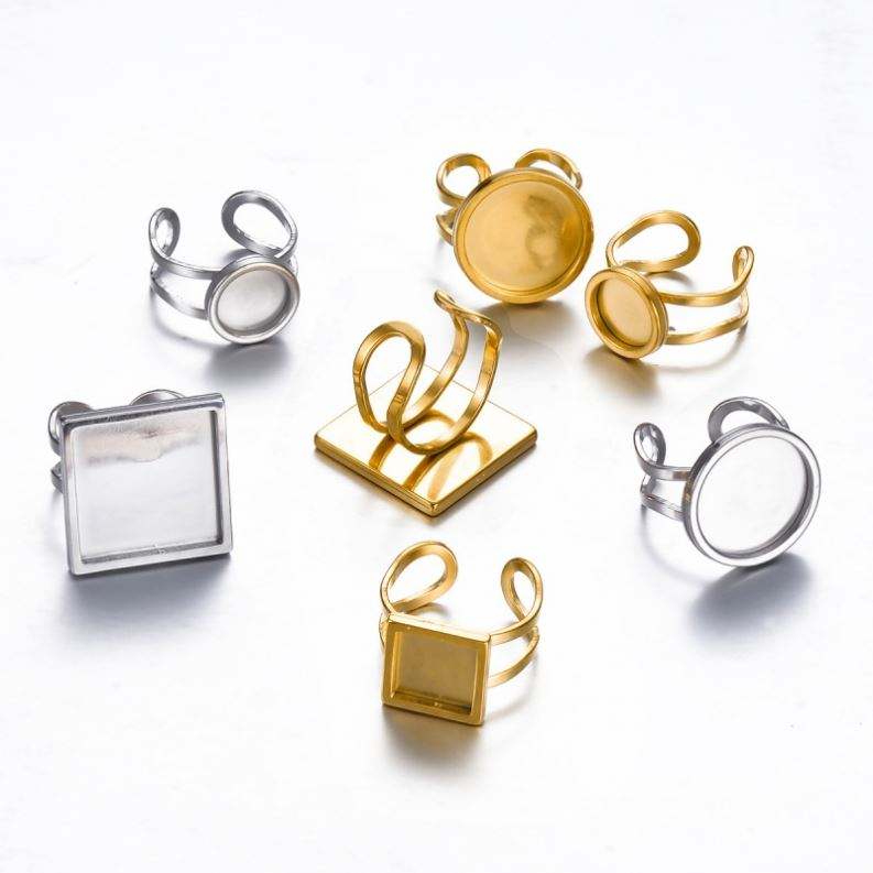 Rond carré ovale épais en acier inoxydable réglable paramètres de bague Cabochon Base vierge résultats de fabrication de bijoux à bricoler soi-même
