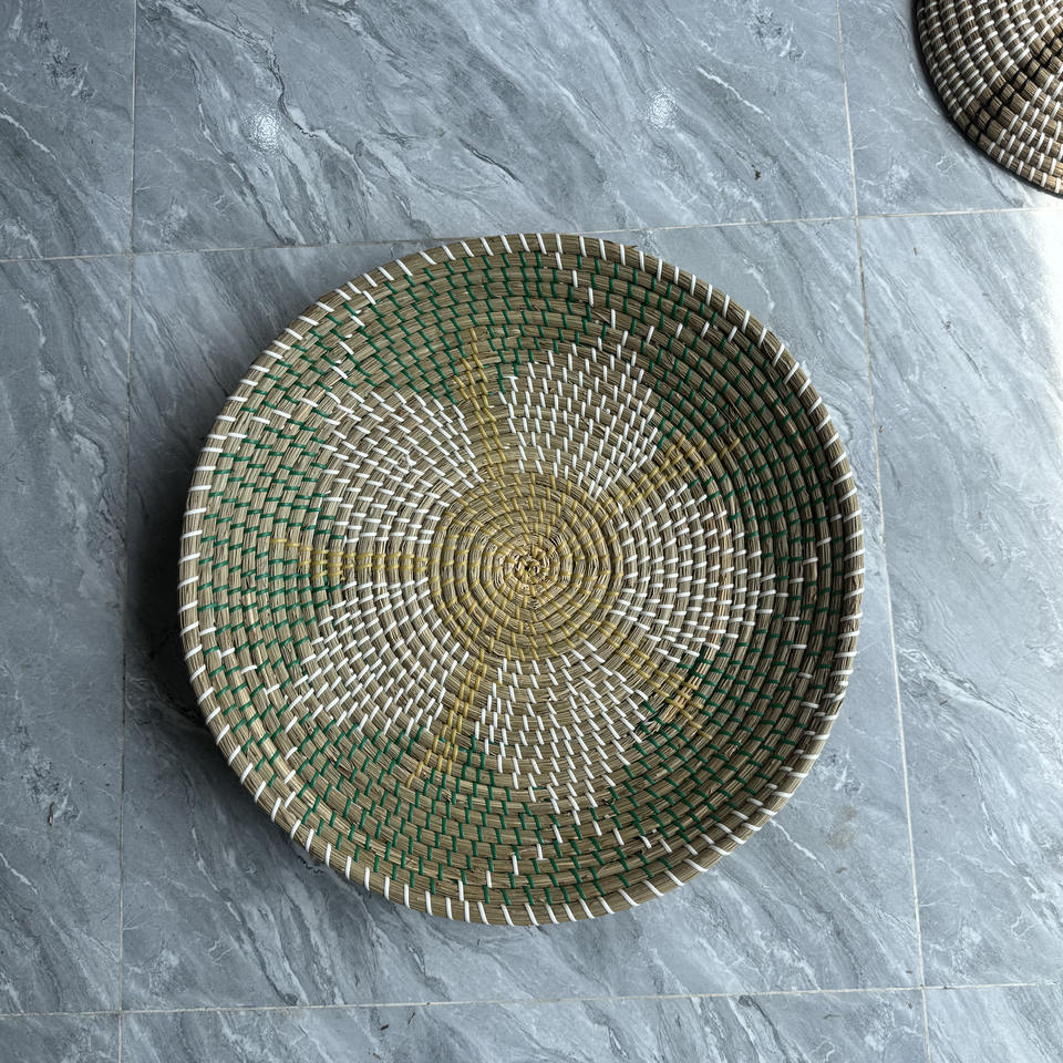 Décoration murale ronde avec motif de fleurs en jonc de mer naturel Matériau naturel Fabriqué au Vietnam Décoration murale Vente en gros