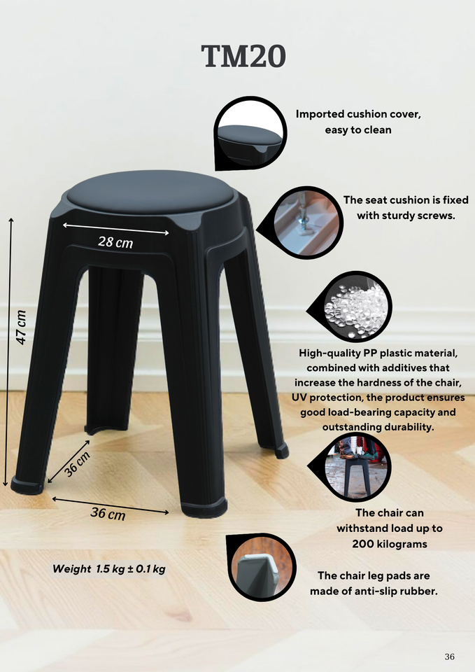 Tabouret en plastique rembourré arrondi - Confortable, compact et adapté à une fête du thé