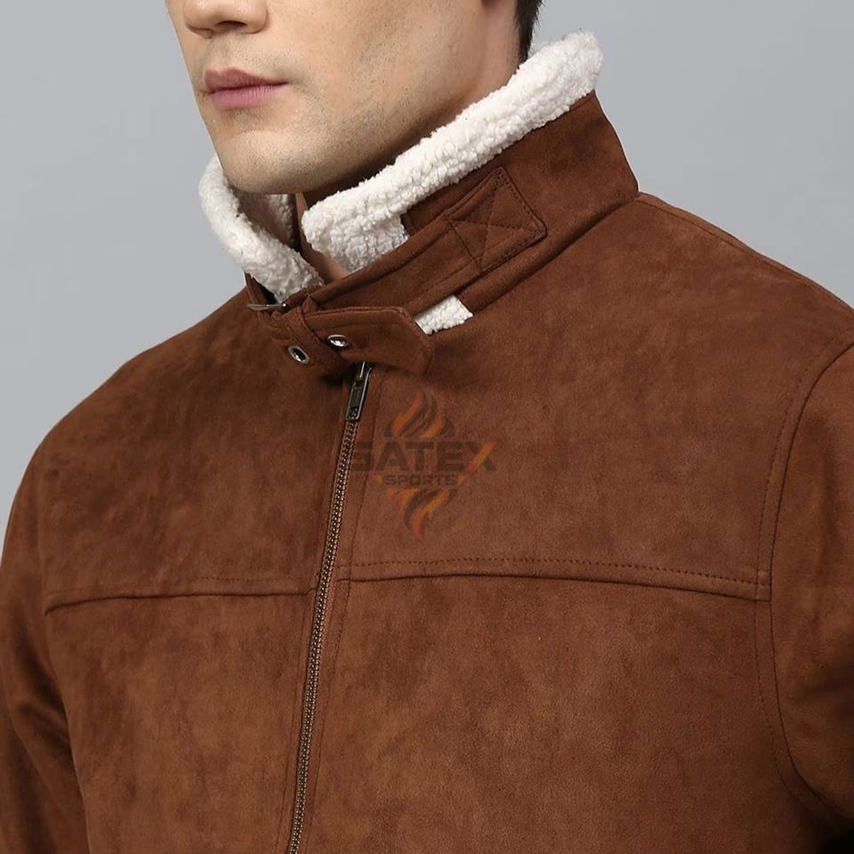 Veste bomber en cuir suédé robuste Roundtree Yorke avec patchwork et broderie Unisexe Veste d'hiver vintage de haute qualité