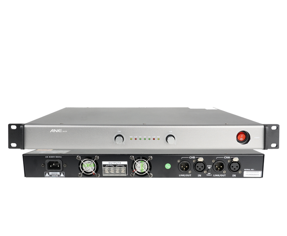 Amplificateur professionnel durable Rovapa DA300 classe D 2 canaux 1U en métal 2*300W alimenté par courant alternatif, connectivité RCA stéréo 8,0 ohms