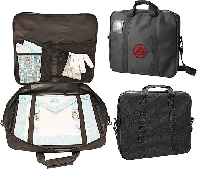 Broderie à la main Triple Tau du Chapitre Royal Arch – Broderie Rouge Directe | Sac franc-maçon en simili cuir avec bandoulière