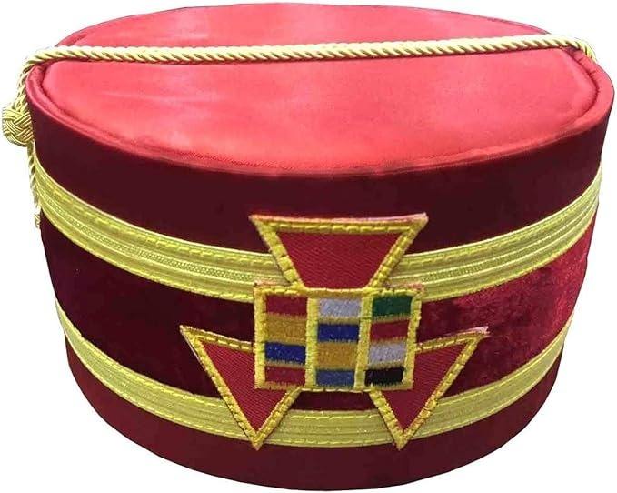 Casquette Rouge du Grand Prêtre du Grand Arc Royal (GPR) avec Emblème PHP et Tresse Dorée - Broderie Machine
