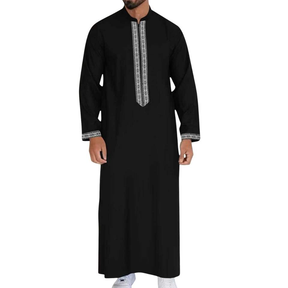 Jubba musulmane pour homme en bleu royal brodée, manches longues, thobe arabe, kandura, dishdasha, vêtements islamiques de luxe, tenue de Ramadan