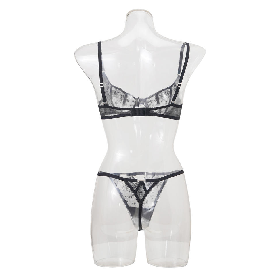 Ensemble soutien-gorge et culotte en dentelle brodée en nylon transparent noir de haute qualité avec porte-jarretelles, style quotidien