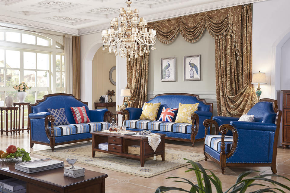 Sofa en bois solide de conception européenne antique turque classique royale ensemble 3 sièges meubles de maison
