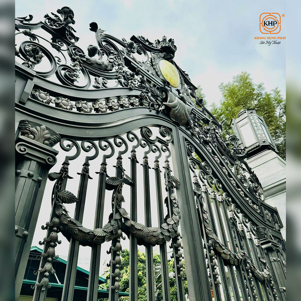 Portails de cour en fer forgé de style victorien classique royal, antivol, grand entrée de palais, double porte, finition patine dorée antique