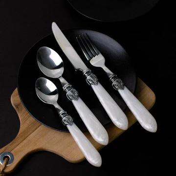 Ensemble de couverts royaux avec poignée en résine blanche Couverts élégants pour table à manger, restaurant de cuisine à domicile et cadeaux d'Inde