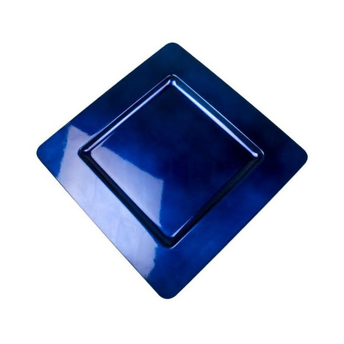 Vaisselle et assiette de chargeur de couleur bleue de conception royale Vaisselle de forme carrée en métal de qualité coûteuse