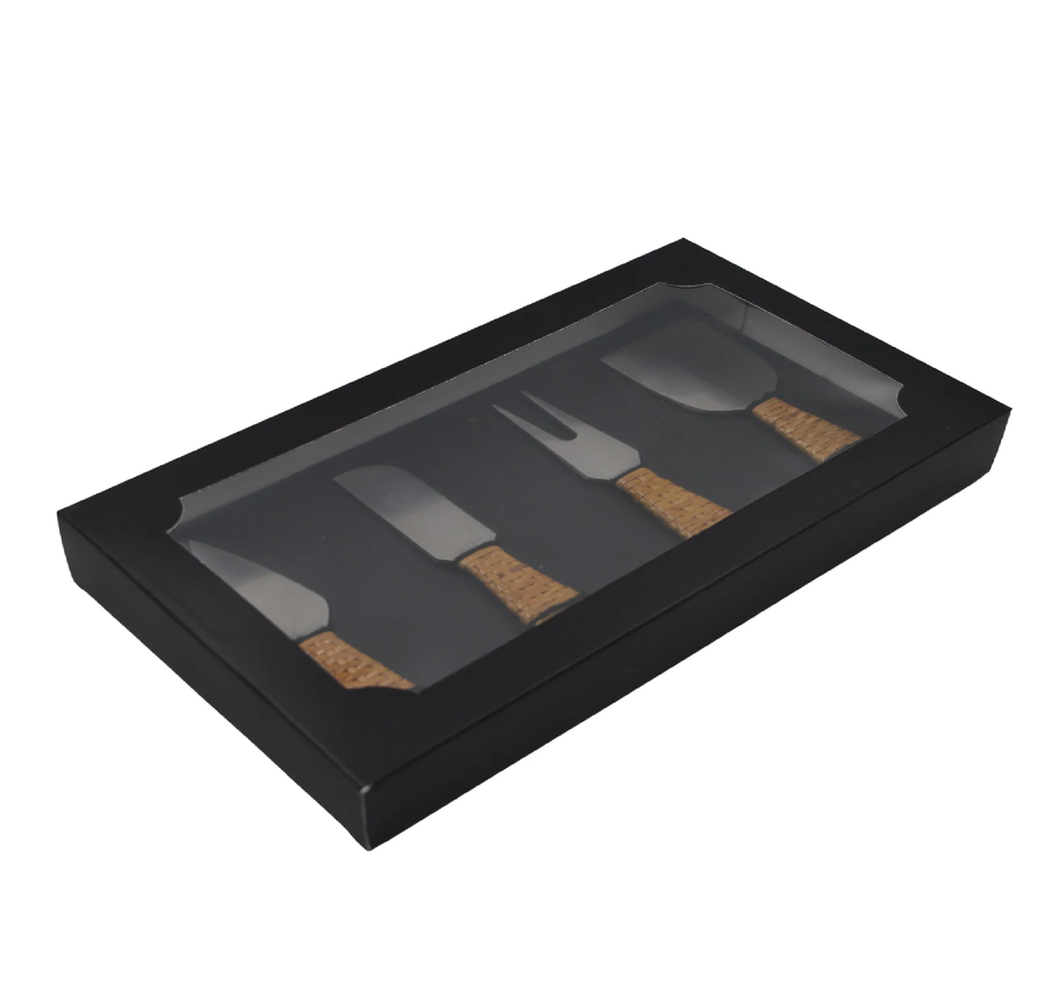 Service à fromage en laiton design royal ensembles de table à manger avec manche en rotin Couteaux à fromage Trancheuse à fromage en acier inoxydable