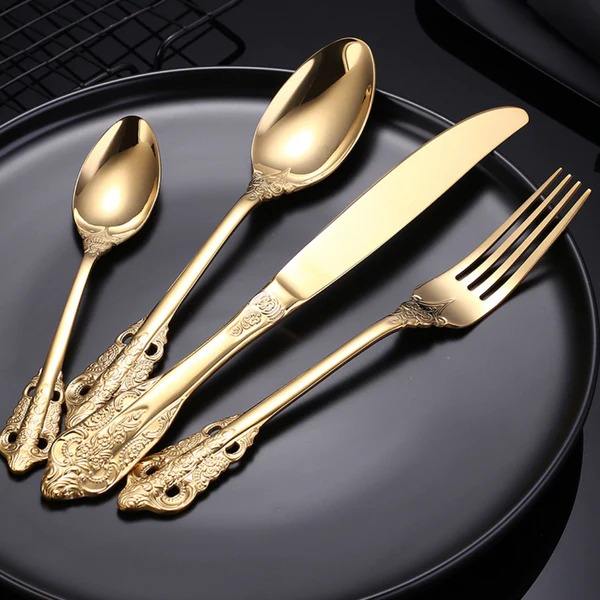 Ensemble de couverts Royal Design plaqué or, parfait pour une table à manger élégante, ensemble cadeau et utilisation spéciale dans les restaurants et les cafés