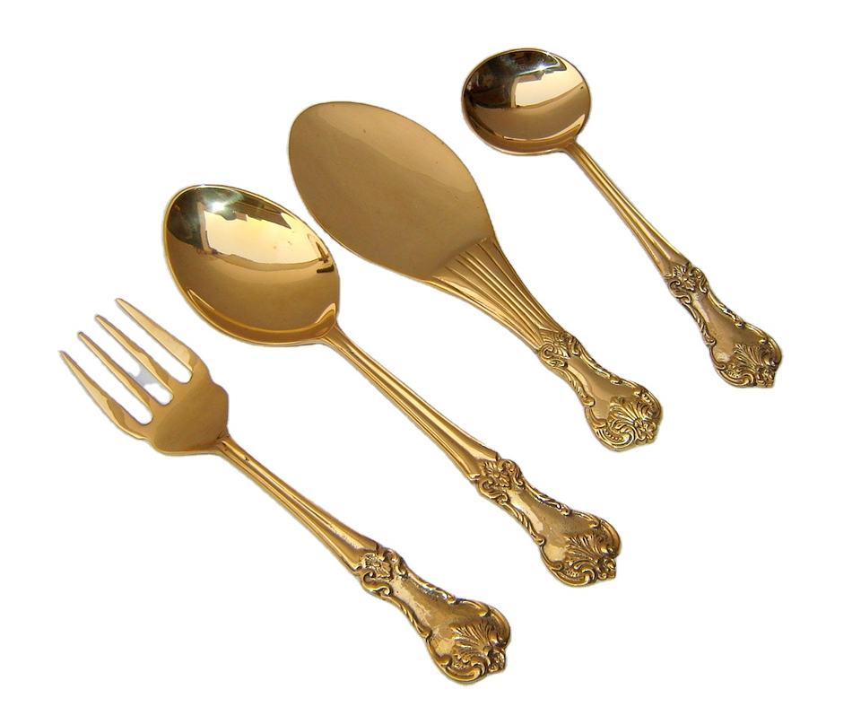Ensemble de 4 couverts en acier inoxydable de conception royale ensemble de couverts dorés brillants pour une utilisation en cadeau à prix réduit