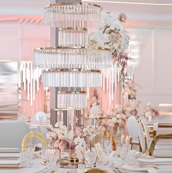 Support floral en métal/acrylique électroplaqué pour mariage, décoration de scène pour hôtel et salle de banquet, montage facile
