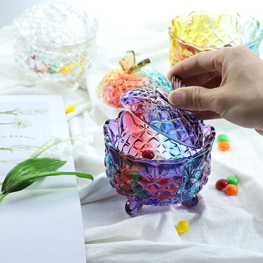 Boîte à bonbons en verre transparent avec couvercle