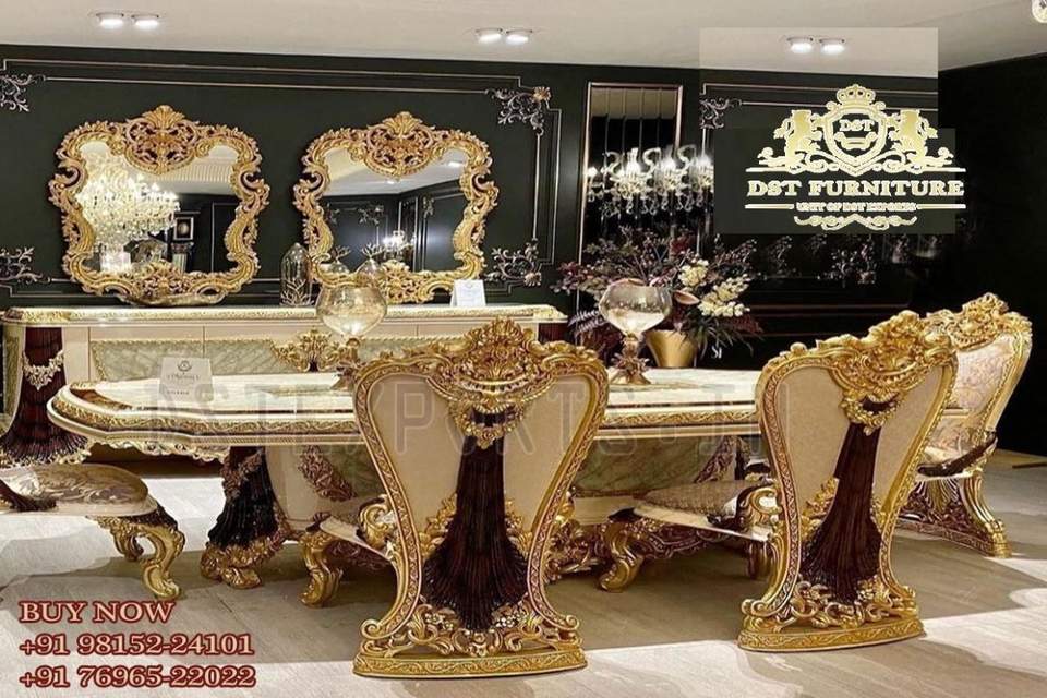 Royal Carved Dining Furniture for Luxury Apartments