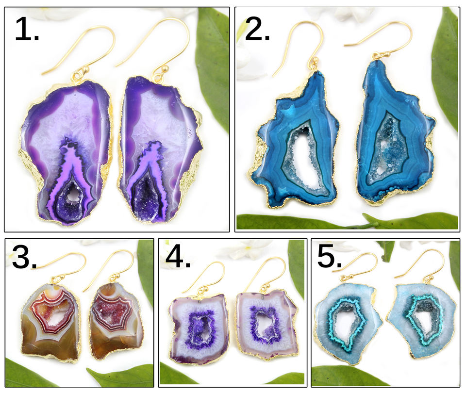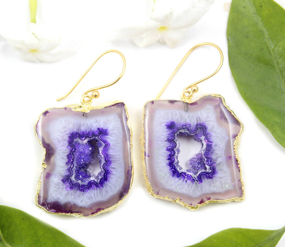 Mode royale naturelle Geode Druzy tranche fantaisie forme or plaqué boucle d'oreille pour femmes fille bijoux en gros noël