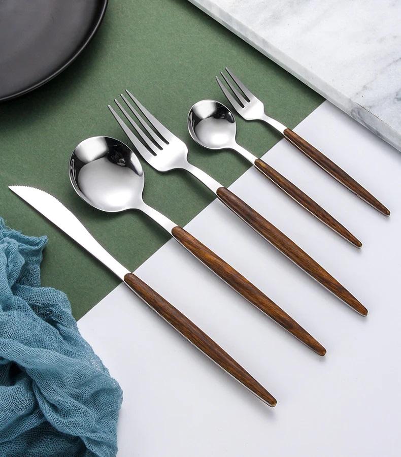 Ensemble de couverts de finition or royal avec manche en bois incroyable ensemble de 5 couverts de service à l'aspect moderne à vendre
