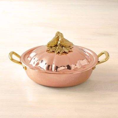 Casserole de cuisine en cuivre martelé Royal avec couvercle et poignées en laiton, plat de service artisanal haut de gamme pour la maison, l'hôtel, le restaurant et la cuisine