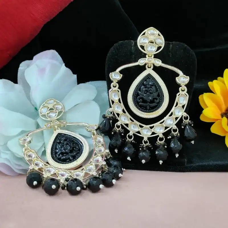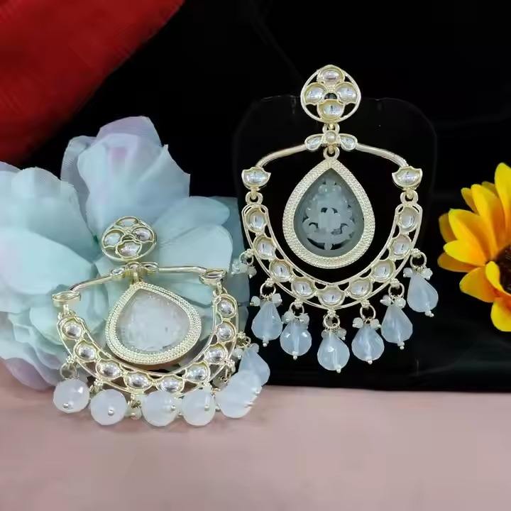 Royal Premium Acrylic Kundan Chandbalis Dangle Earrings with Engraved Center Stone Luxury Style for Weddings Festive Occasions