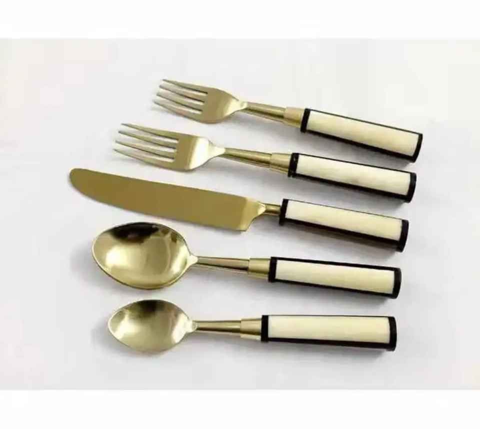 Ensemble de couverts Royal Look en acier inoxydable plaqué argent, design moderne, haute qualité, finition miroir.