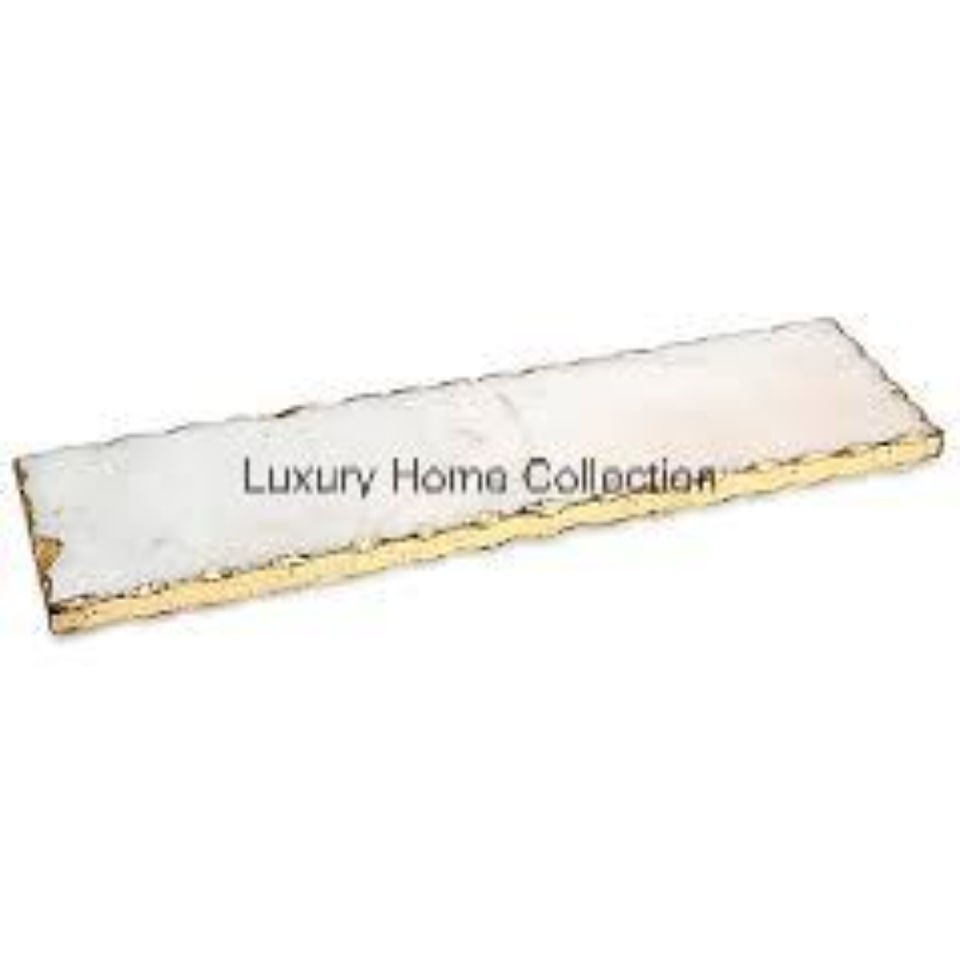 Plateau de service en marbre aspect royal avec poignée en fonte d'aluminium doré en forme de rectangle pour décor de cuisine présentoir de table
