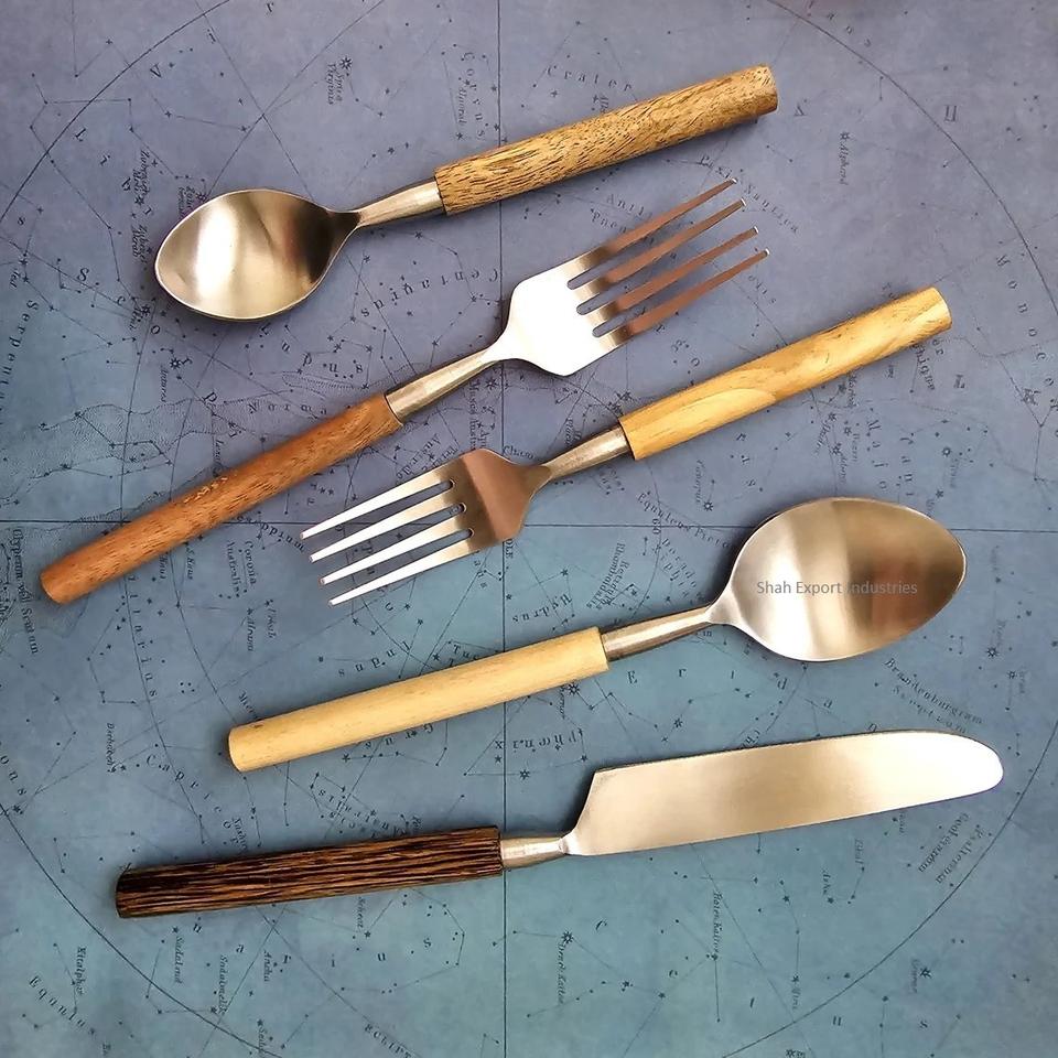 Ensemble de couverts royal en acier inoxydable argenté avec manche en bois d'acacia pour les cadeaux de mariage