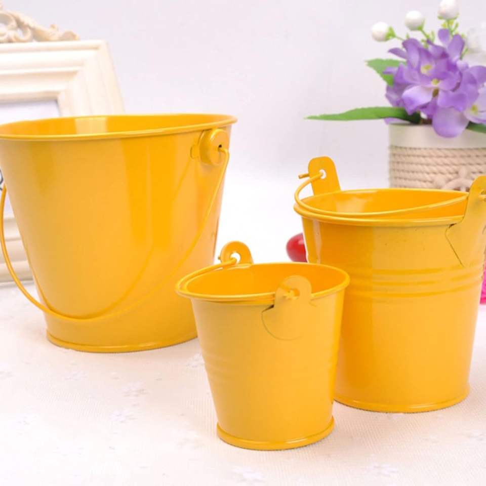 Seau Royal en métal avec poignée revêtu de jaune pour la maison, l'intérieur, le jardin, la décoration, la jardinière, les seaux à usage multiple