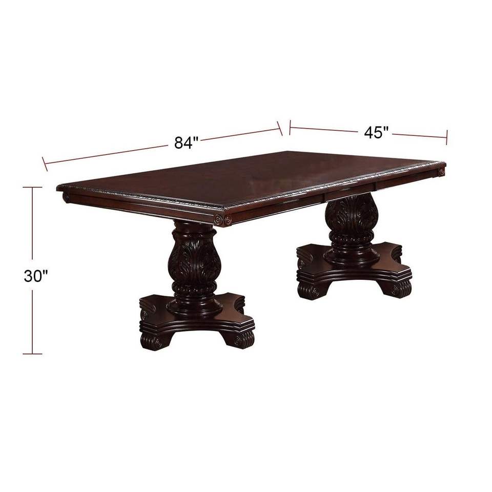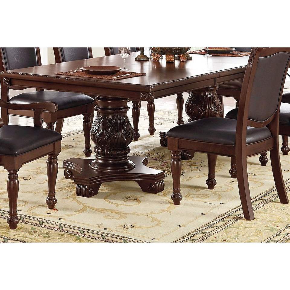 Table à manger rectangulaire royale avec base à double piédestal, 1 pièce, table rectangulaire formelle marron pour salle à manger