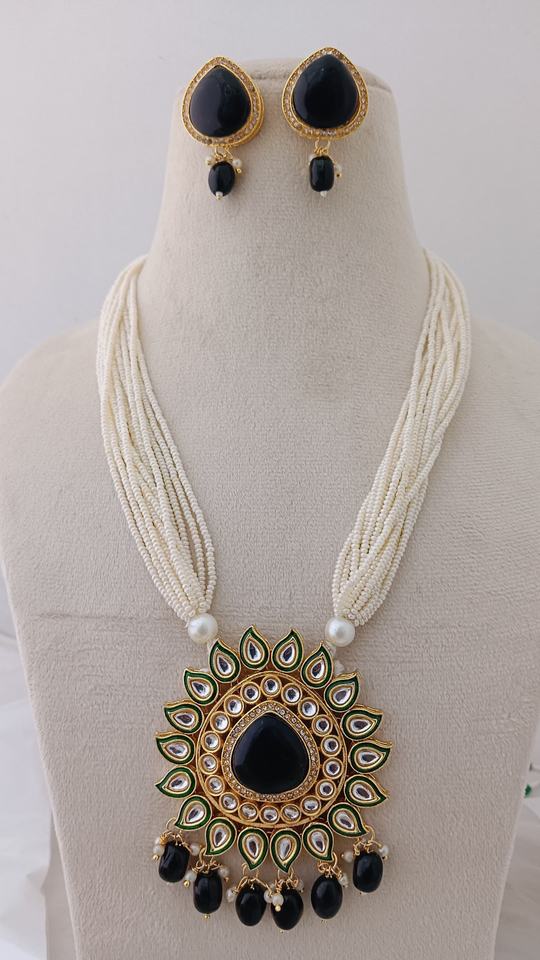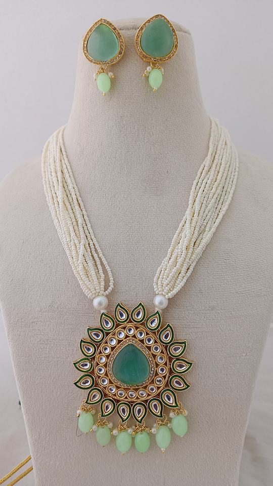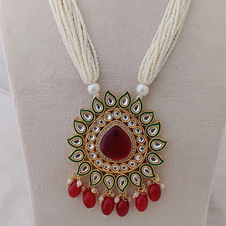 Royal Ruby Lotus Multi-Strand Kundan Necklace Set with Heavy Brass Customizable Design and Pearl Stone Show Regal Elegance