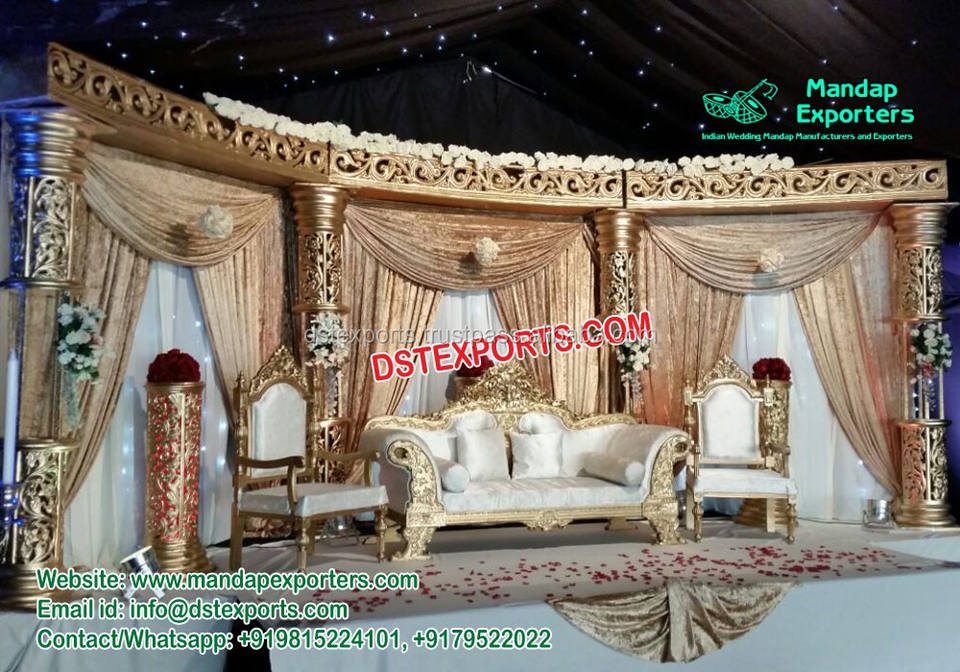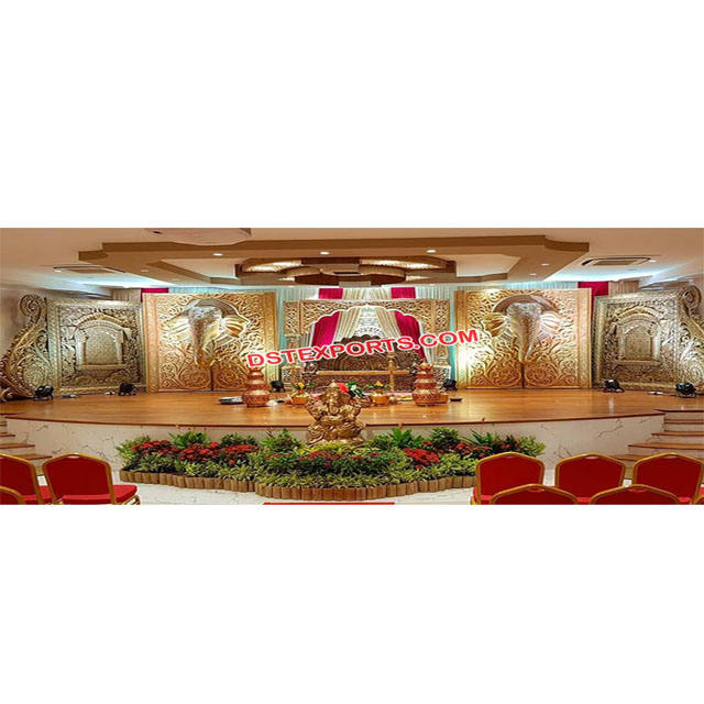 Décor de scène de mariage royal du sud de l'Inde, dernier fabricant de décors de scène de mariage, décoration de scène de réception de mariage hindou