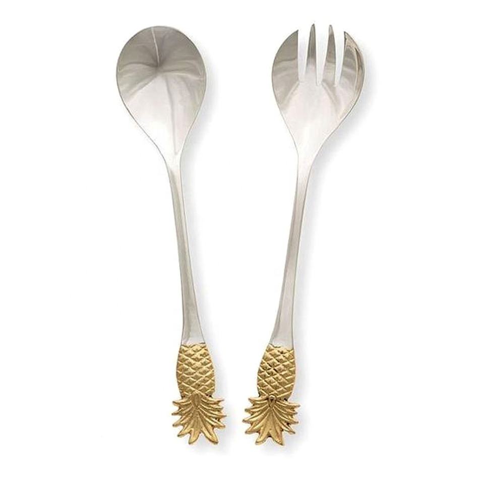Serveur à salade en acier inoxydable royal avec design en forme d'ananas, manche fait à la main, ensemble de couverts de haute qualité pour la maison