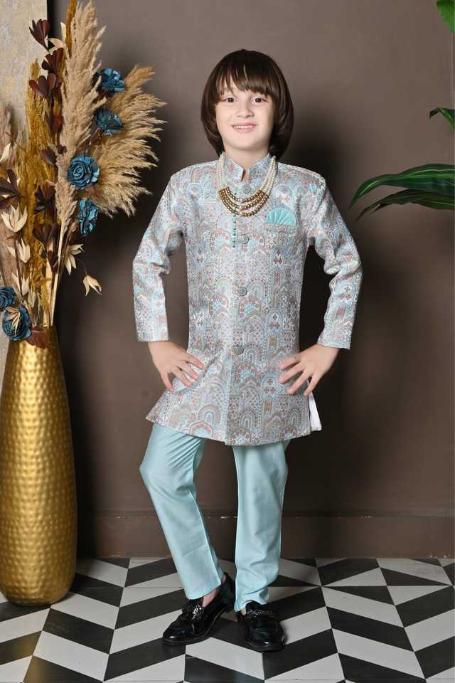 Royal Style Kids Boys Silk Sherwani Traditional Wedding & Party Dress for Children with Elegant Embroidery