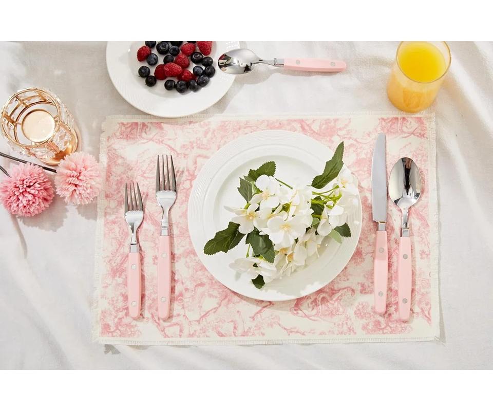 Ensemble de couverts de designer à poignée rose de style royal vaisselle élégante en acier inoxydable pour la maison et les événements fabriqués à la main en Inde