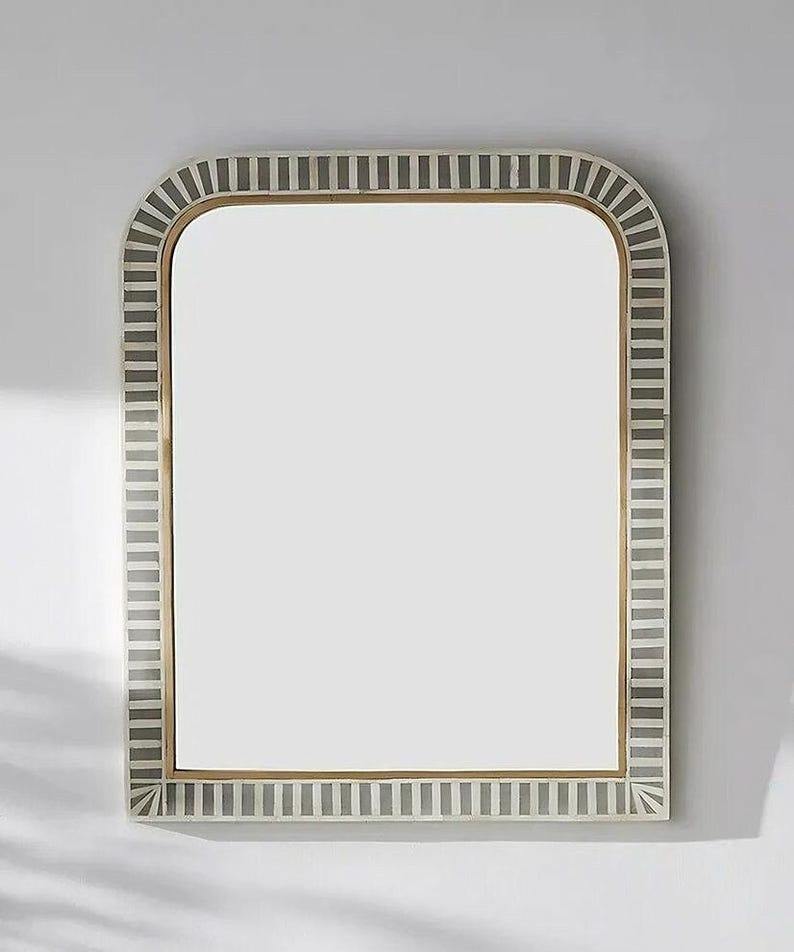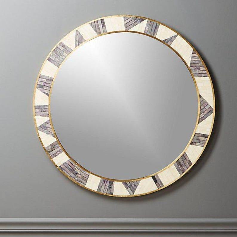 Royal Vintage Round Shaped Black Large Bone Inlay Wall Decorative Mirror Living Room Bedroom Hanging Mirror Frame Office Mirror
