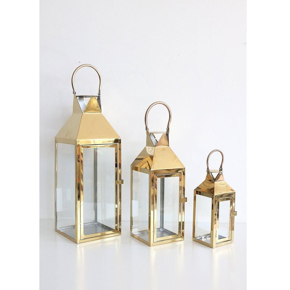 Lanternes décoratives de mariage Royal en acier inoxydable plaqué or bougie décorative faite à la main ensemble de lanternes de noël bougeoir