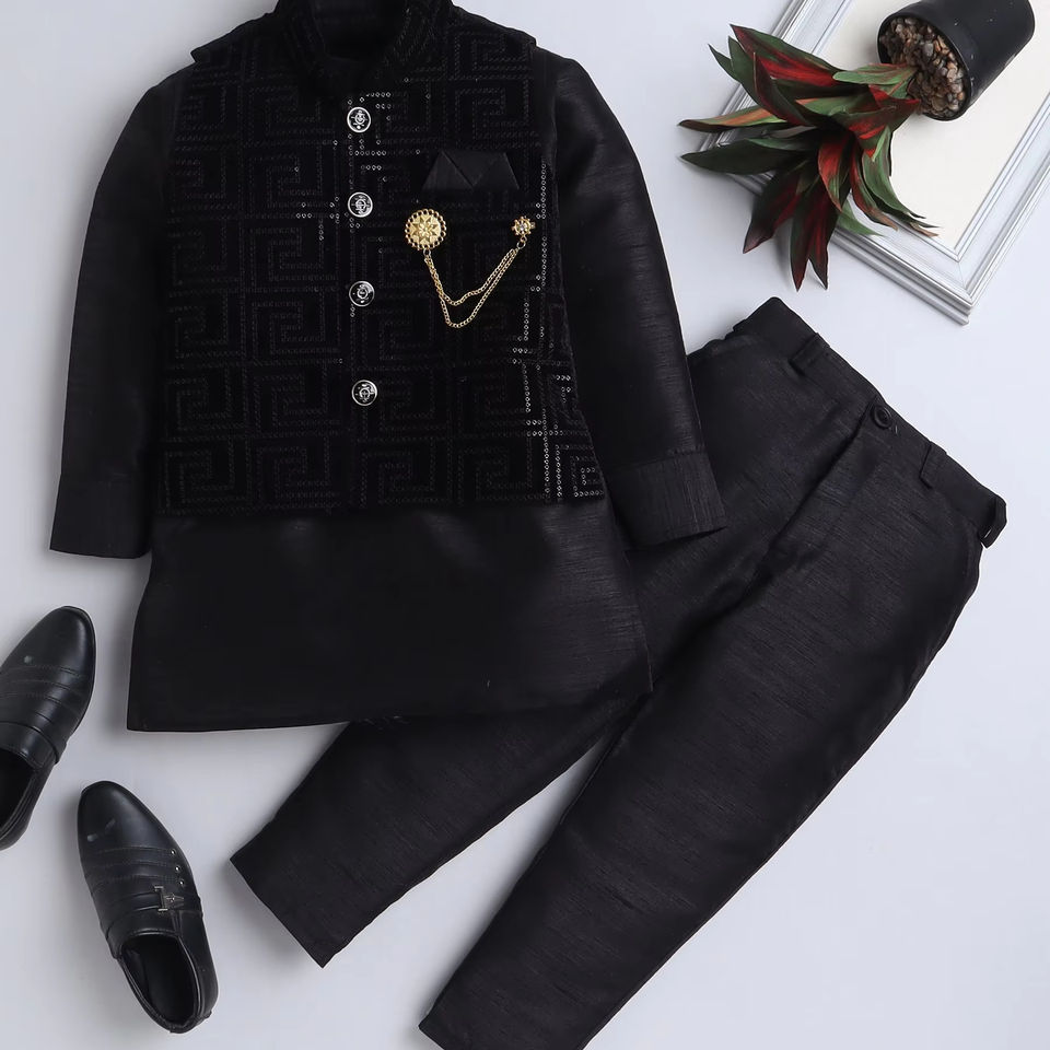 Royal Wedding & Party Silk Boys Sherwani Traditional Ethnic Outfit for Children