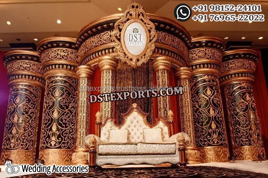 Scène de mariage sur le thème de l'or blanc royal pour les mariages malaisiens, scène de mariage sur le thème de Rajwada pour les mariages indiens, scène de mariage en FRP fabriquée en Australie