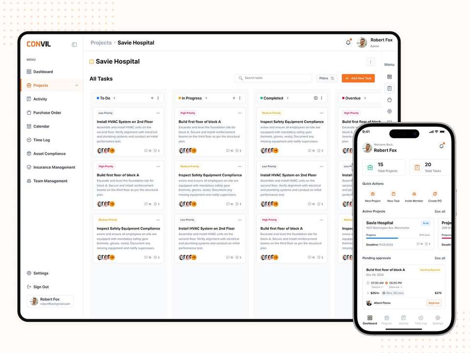 Développement d'applications mobiles de gestion de projets de construction Royalcraft pour Android et iOS avec suivi des tâches et rapports de progression