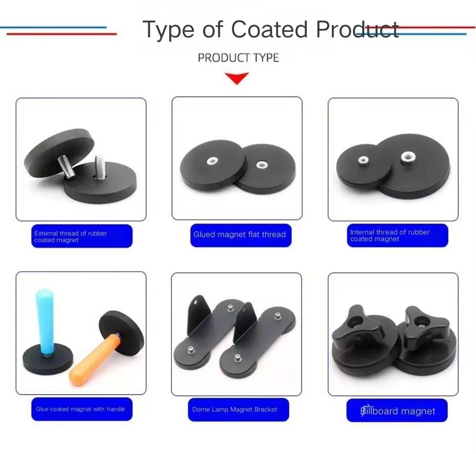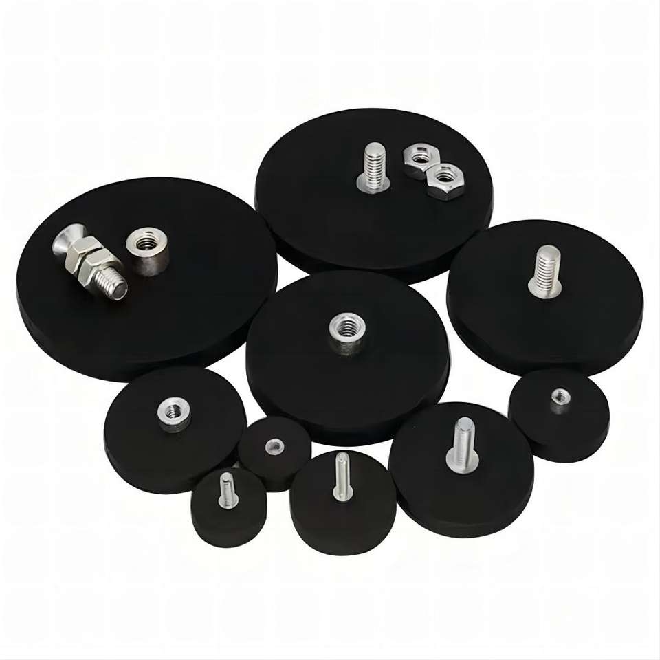 Revêtement d'aimants en caoutchouc de montage:Aimant plastifié avec revêtement en caoutchouc et filetage mâle/femelle.