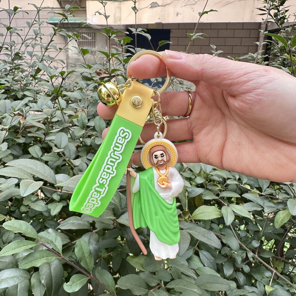 Porte-clés en caoutchouc Enfants Cartoon San Judas Tadeo Porte-clés Enfants Protection Sac St.Juda Porte-clés Catholique