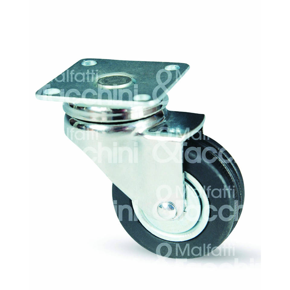 Roue en caoutchouc Art. 150 sur moyeu à billes support en acier plaque pivotante chromée