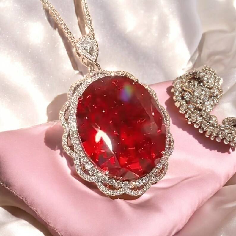 Pendentif rubis 925 argent géométrique rubis Art déco collier juillet pierre de naissance fête des mères cadeau d'anniversaire pour ses bijoux élégants