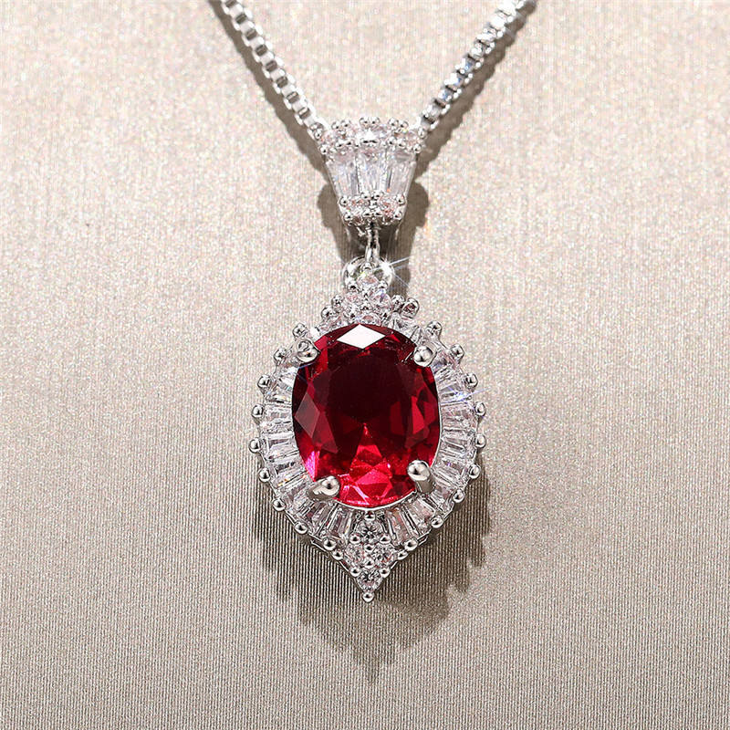 Collier pendentif rubis en argent 925 plaqué rhodium, serti griffe taille baguette, goutte d'eau, classique, bijoux de mariage pour femme