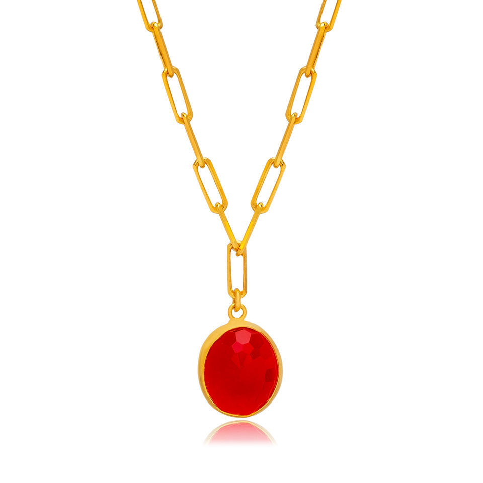 Rubis Quartz Ovale 22K Or Lunette Argent Charme Collier En Gros 925 Argent Turc À La Main Fine Jewelry