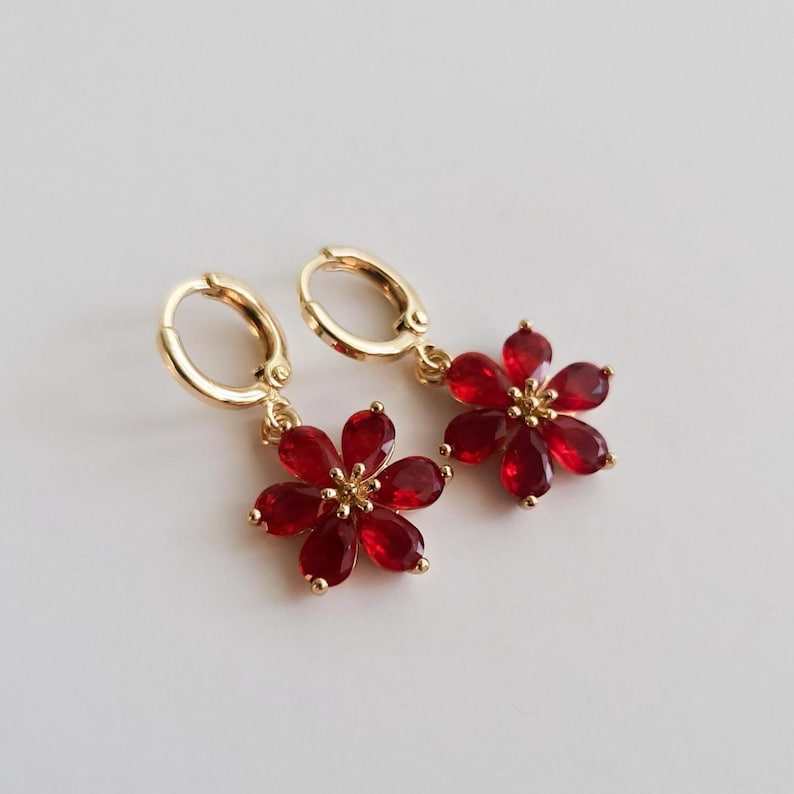 Boucles d'oreilles créoles en argent sterling plaqué or, style vintage victorien, avec pierre précieuse naturelle en forme de poire rouge rubis