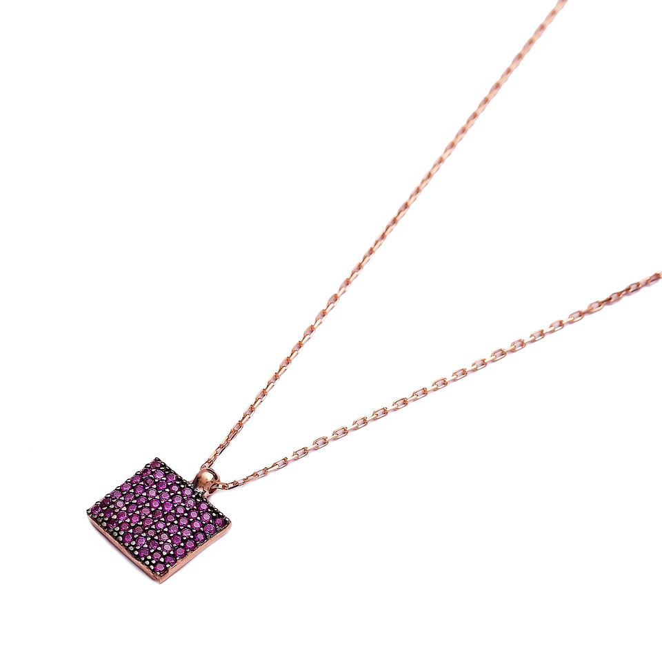 Collier de forme carrée en pierre de rubis en gros fait à la main en argent sterling 925 bijoux à la mode