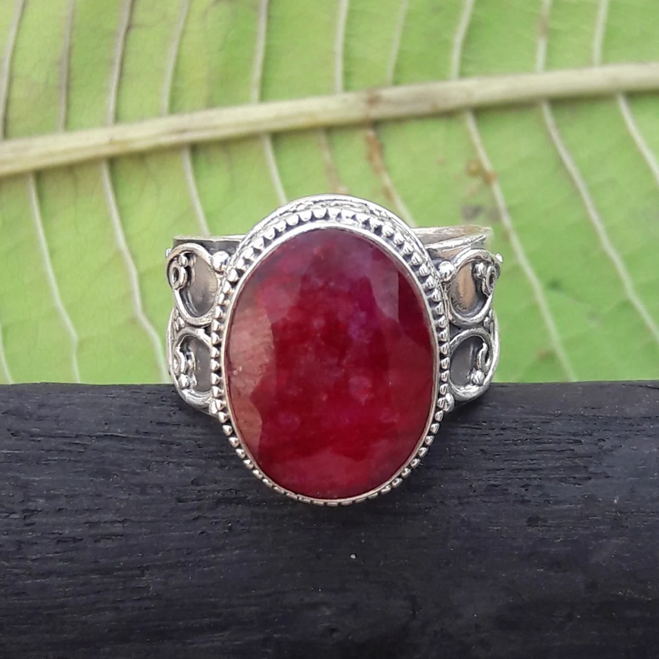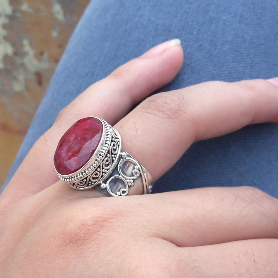 Bague vintage en rubis, style antique, pierre précieuse en rubis, bijou élégant et remarquable