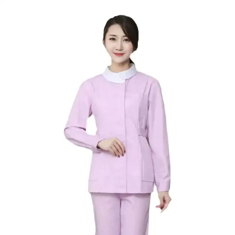 Uniforme d'infirmière à col volanté, ensemble deux pièces à manches longues, tenue d'été, blouse d'infirmière, vêtements de travail en pharmacie, ensemble à manches courtes