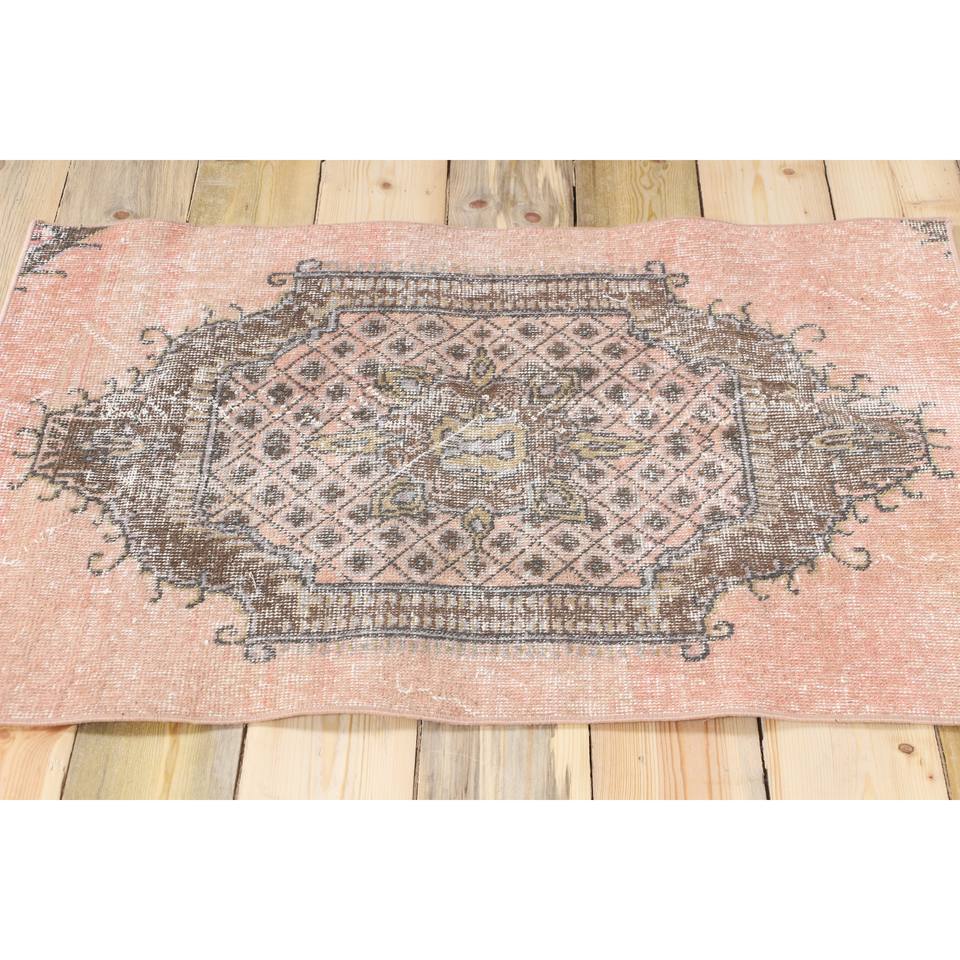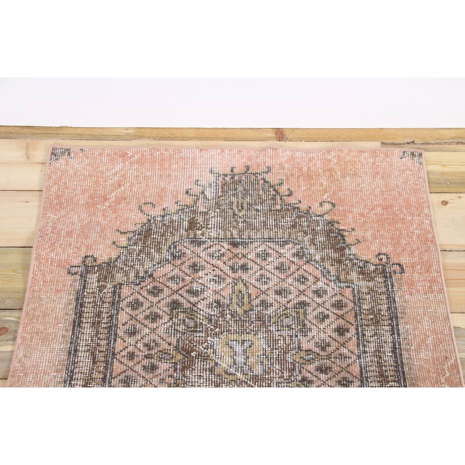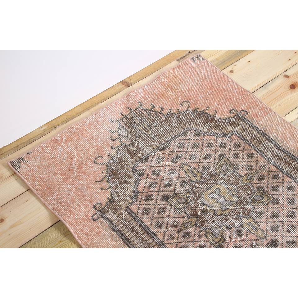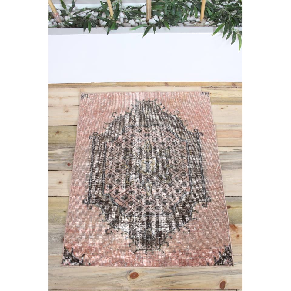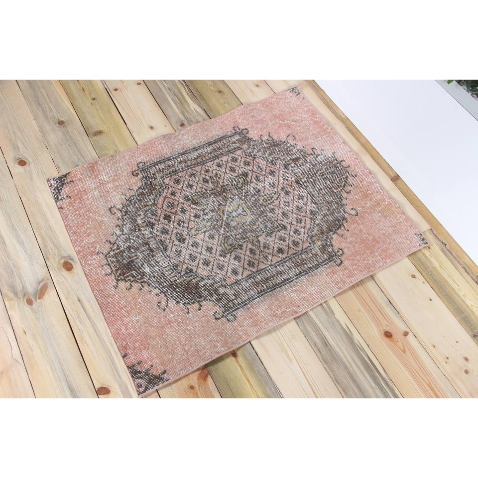 Tapis turc rose à motifs floraux en laine, 2,6 x 3,3 pieds